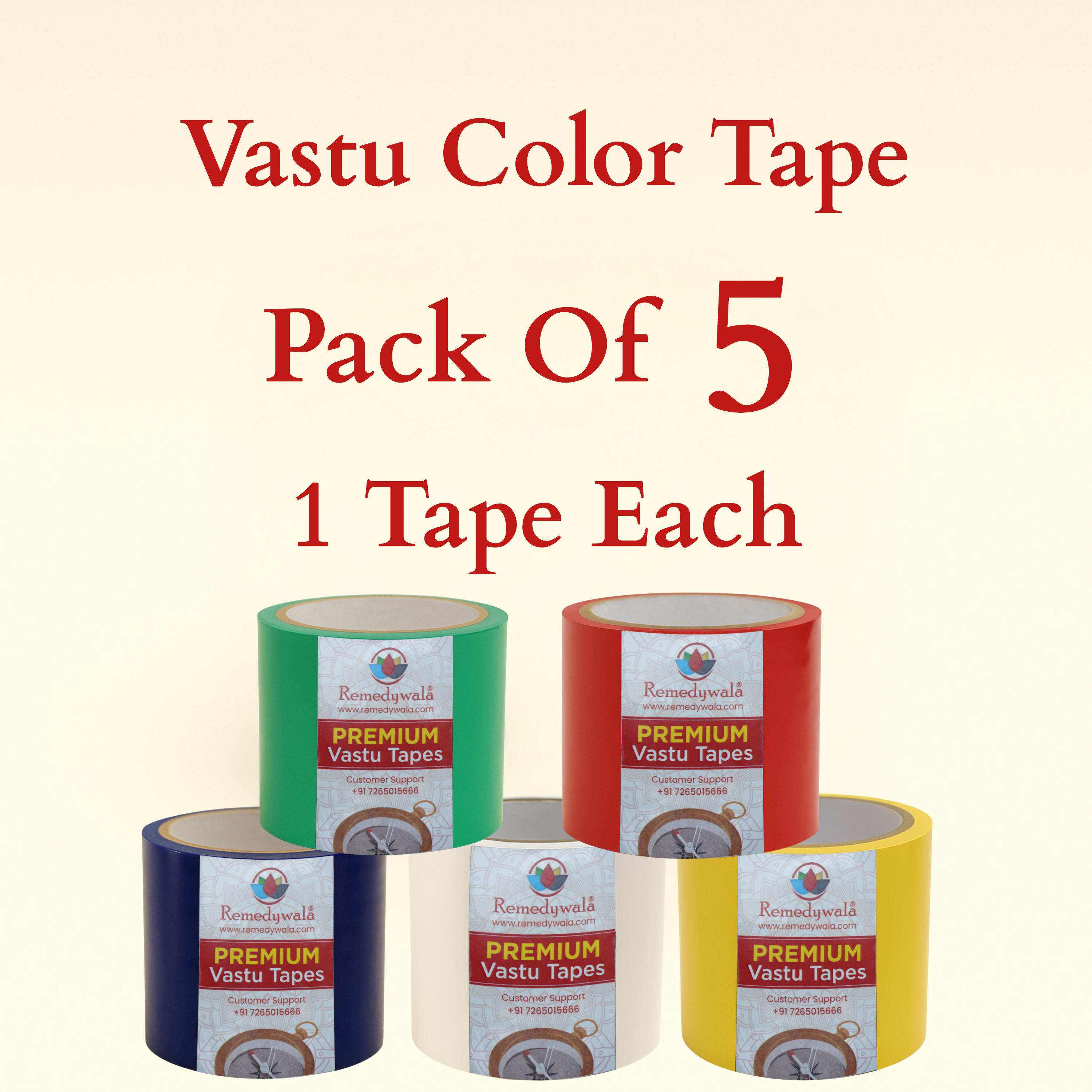 Vastu Color Tape is a powerful and easy-to-use vastu remedy designed to balance the five natural elements – Fire, Water, Earth, Air, and Space – through specific colors. Each tape color is linked with a particular element and direction, helping to remove vastu defects (doshas) and restore the natural flow of positive energy in your home, office, shop, or factory.