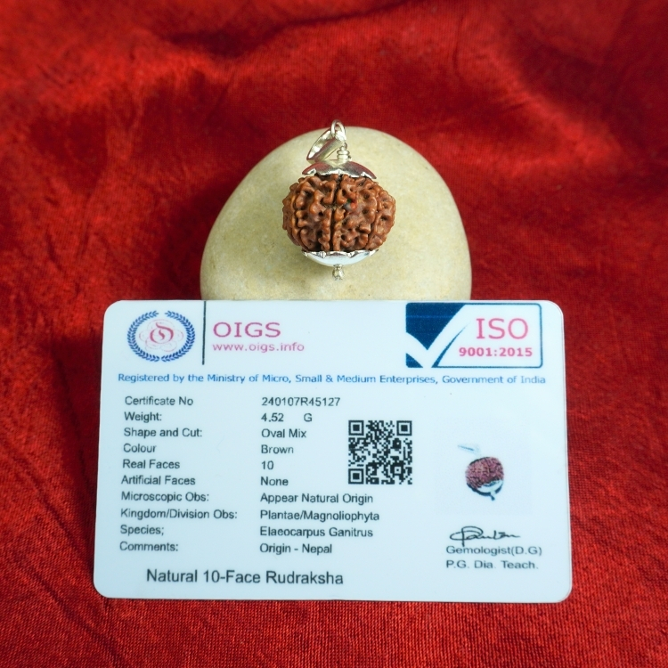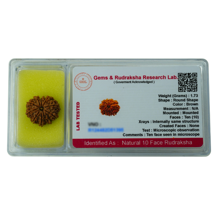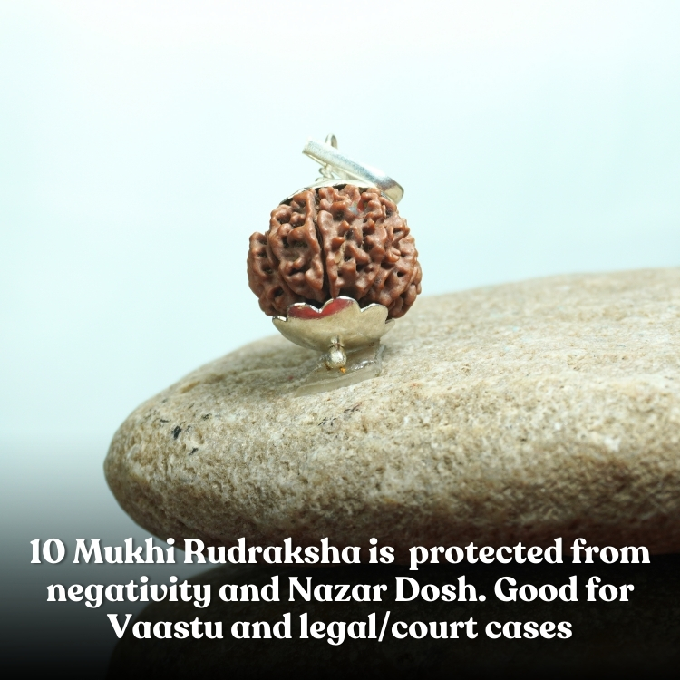Spiritual Benefit: The 10 Mukhi Rudraksha is usually represents human form. It enhances an individual’s six senses while also promoting mental clarity and peace. This Rudraksha imparts mental tranquility and courage to face obstacles so worn during challenging moments in life. This bead aids in the removal of all nine planets’ harmful effects. Black magic, tragic death, mishaps, and the evil spirit are all prevented for those who wear it.