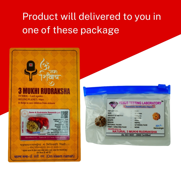3 Mukhi Nepali Rudraksha is blessed by Lord Agni and its controlling planet is Mars. However, it is said to be good for boosting your energy levels, overcoming laziness and also improving blood circulation. Also it is believe to make the wearer fearless, courageous and enhances self-esteem. It helps in subduing the negative effects of Mars.