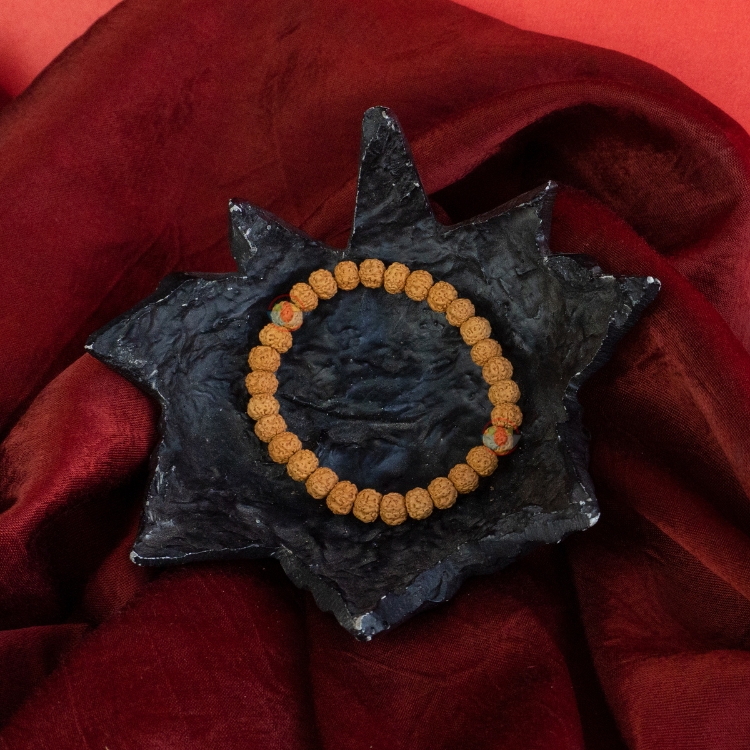 - This hand-made Rudraksha Bracelet processed in traditional style allows the individual tying and threading of each knot and each bead to be imbued with Bracelets’s own unique mantra.