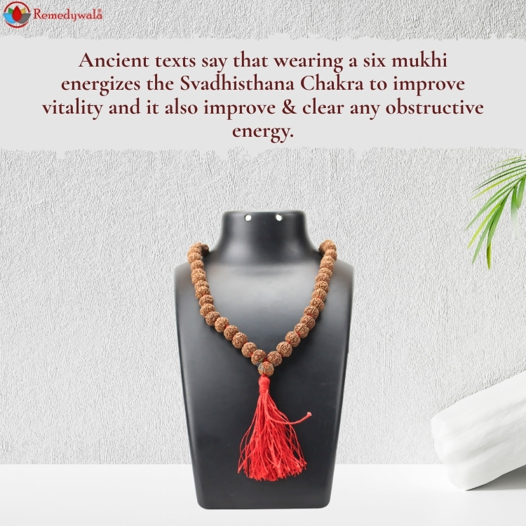 Spiritual Benefit: Ancient texts say that wearing a six mukhi energizes the Svadhisthana Chakra to improve vitality and it also improve & clear any obstructive energy.