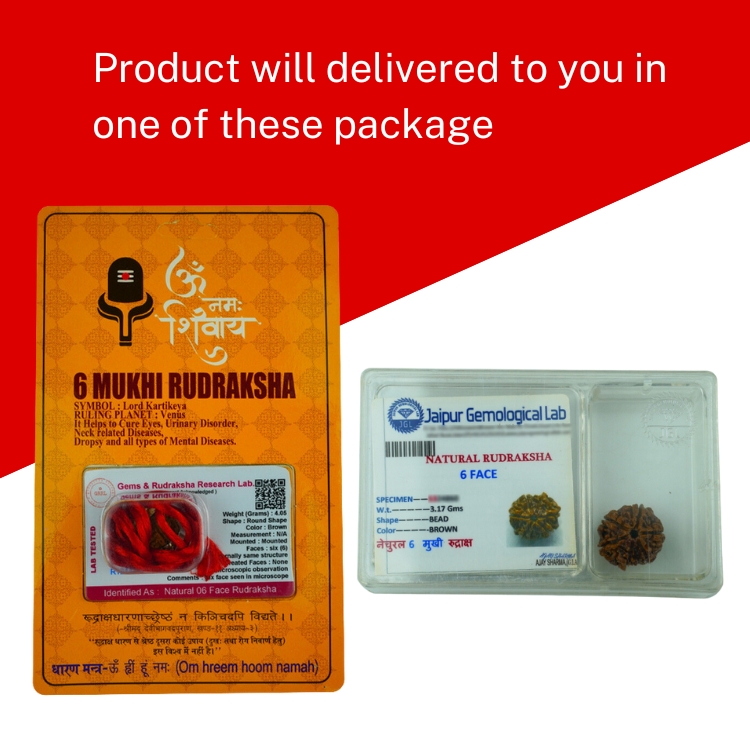 Spiritual Benefit: Ancient texts say that wearing a six mukhi energizes the Svadhisthana Chakra to improve vitality and it also improve & clear any obstructive energy.