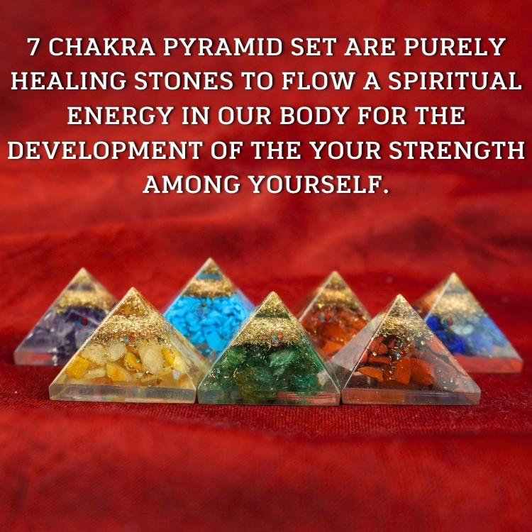Metaphysical properties:- The Human Body is governing by the 7 Spinning Energy Centres, known as “Chakra”. 7 chakras flow the non-material energy in our physical body. Each chakra has its own functionality equivalent to spiritual level. 7 Chakra Pyramid Set are purely Healing Stones to flow a spiritual energy in our body for the development of the physical and mental strength. 1) RED JASPER for Root Chakra 2) RED-ORANGE CARNELIAN for Sacral Chakra 3) YELLOW AVENTURINE for Solar Plexus Chakra 4) GREEN AVENTURINE for Heart Chakra 5) BLUE AVENTURINE for Throat Chakra 6) LAPIS LAZULI for Third Eye Chakra 7) AMETHYST for Crown Chakra For More Related Product