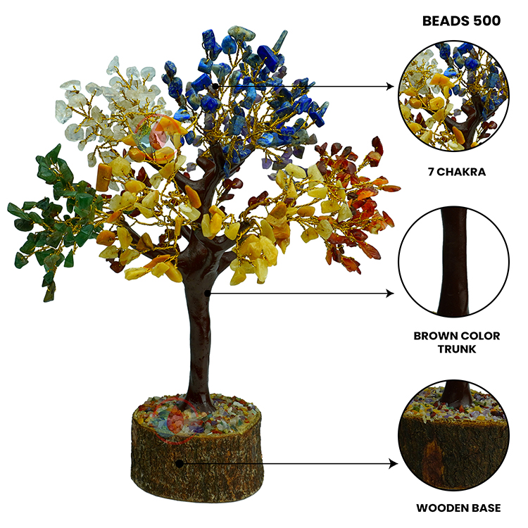 • 【ABOUT CRYSTAL TREE MATERIAL】:- Seven Chakra Chips Stones and wood block, Beads: 500 approx.