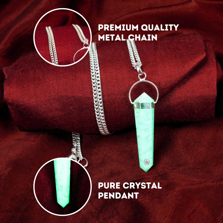 - Amazonite Pendant Double Terminated with Metal Chain. Reiki Healing and Crystal Healing Raw Stone Amazonite Pendant for Women and Men