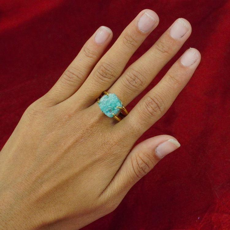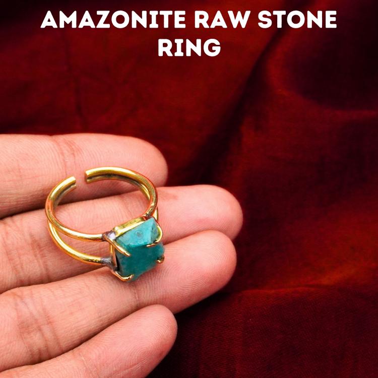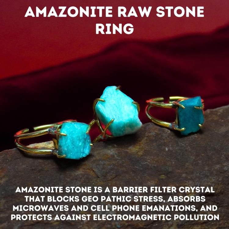 • AmazoniteRaw Stone Ring. Reiki Healing and Crystal Healing Raw Stone Amazonite Pendant for Women and Men.