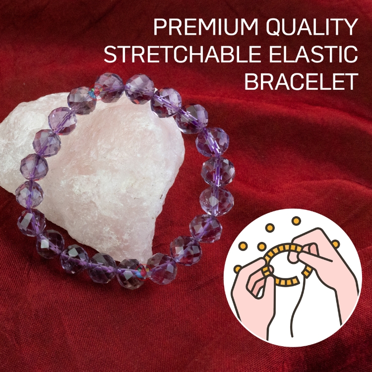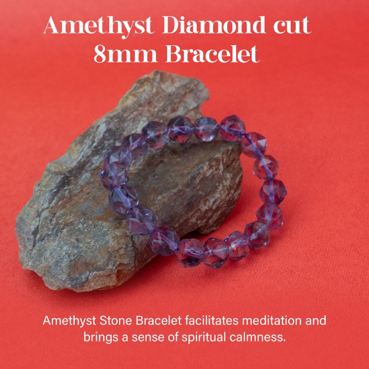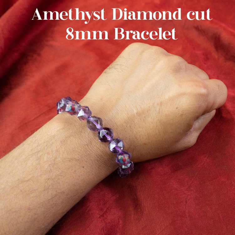 Amethyst Diamond Cut Bracelet For Reiki, Balance Chakra, Positive Energy, and Healing. Amethyst Stone Bracelet 8mm. 8mm Gemstones Round Beads Stretchable Bracelet for Men and Women.