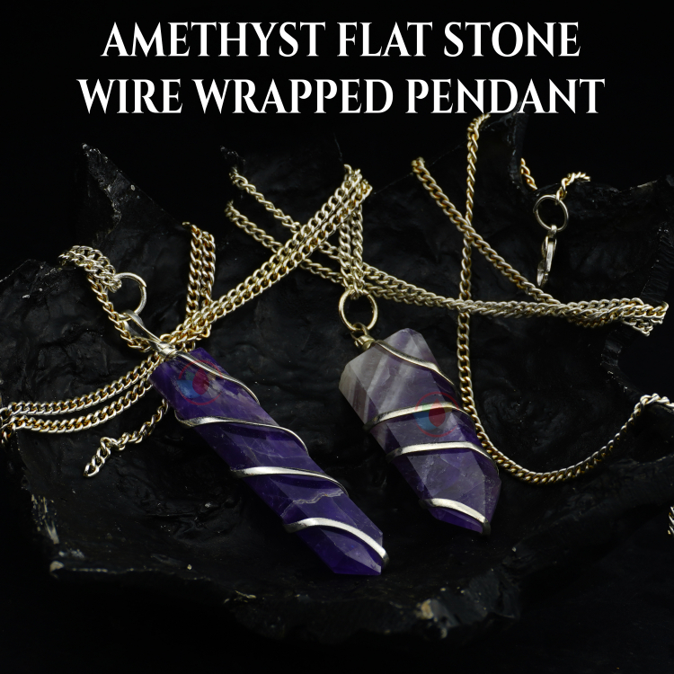 Amethyst Flat Stone Wire Wrapped Pendant