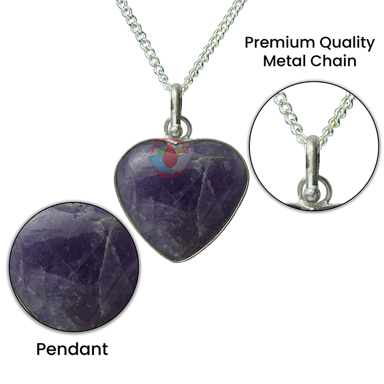 - Amethyst Pendant Frame Heart Shape with Metal Chain. Reiki Healing and Crystal Healing Amethyst Stone Pendant for Women and Men