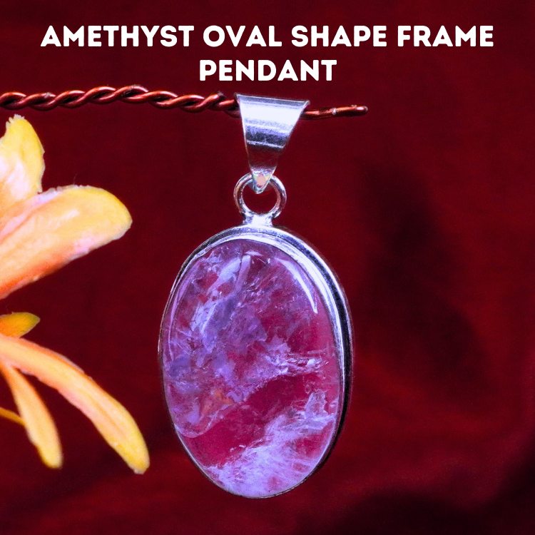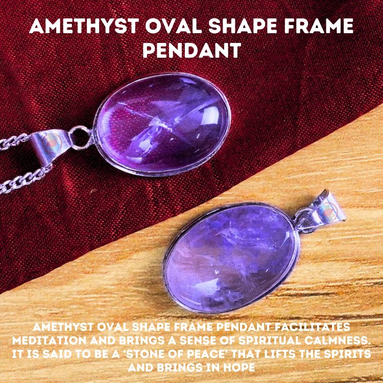 - Amethyst Oval Shape Frame Pendant facilitates meditation and brings a sense of spiritual calmness. It is said to be a ‘stone of peace’ that lifts the spirits and brings in hope.