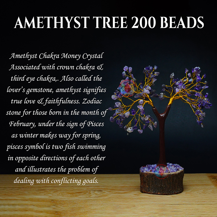 【AMETHYST GEMSTONE TREE BENEFITS】:- Amethyst Chakra Money Crystal – Associated with crown chakra & third eye chakra,. Also called the lover’s gemstone, amethyst signifies true love & faithfulness. Zodiac stone for those born in the month of February, under the sign of Pisces as winter makes way for spring, pisces symbol is two fish swimming in opposite directions of each other and illustrates the problem of dealing with conflicting goals.