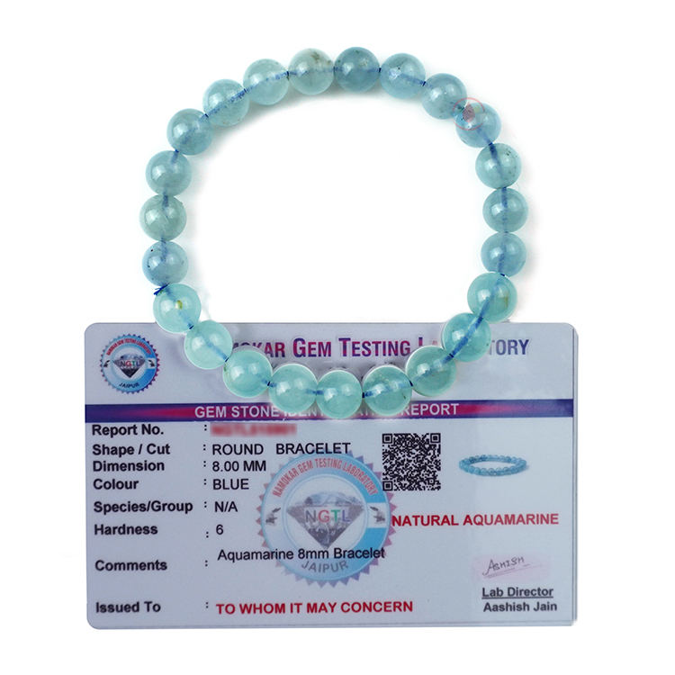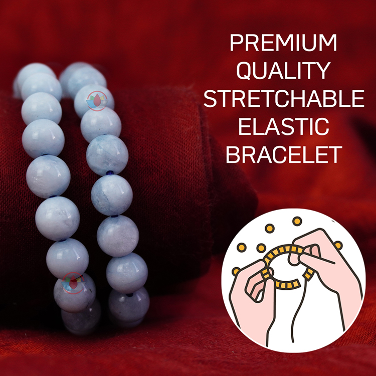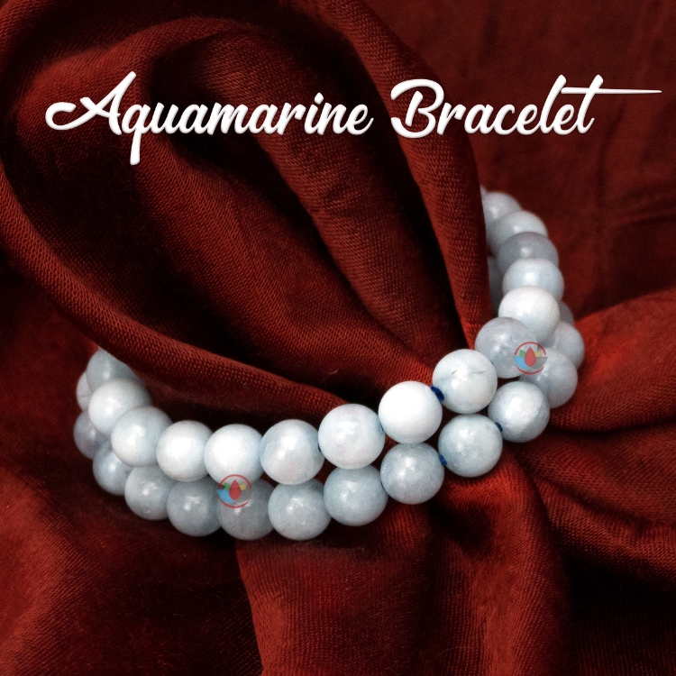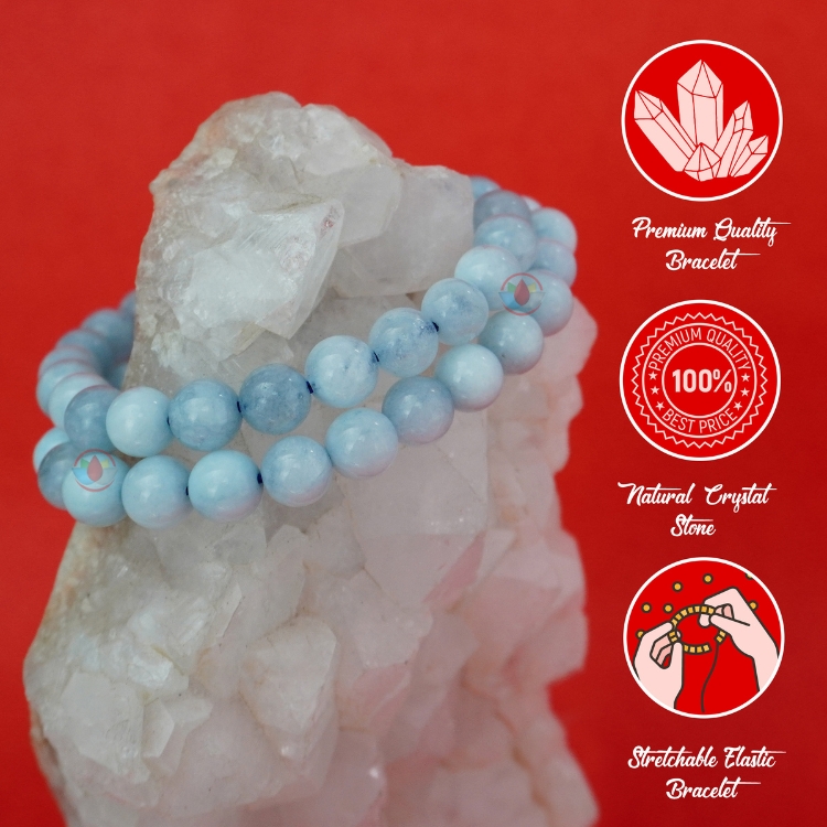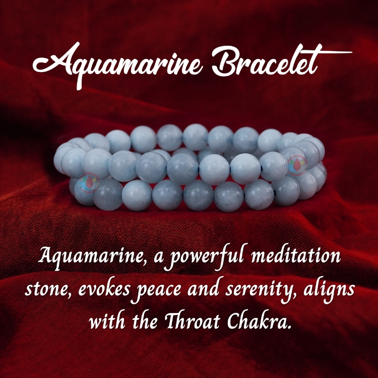 - Aquamarine Bracelet 8mm is most powerful as a meditation stone, as it brings a great peace and serenity. is associated with the throat Chakra, inspiring courage to the user as well as compassion.
