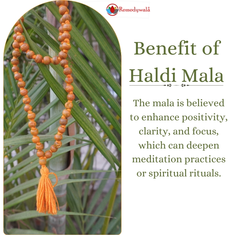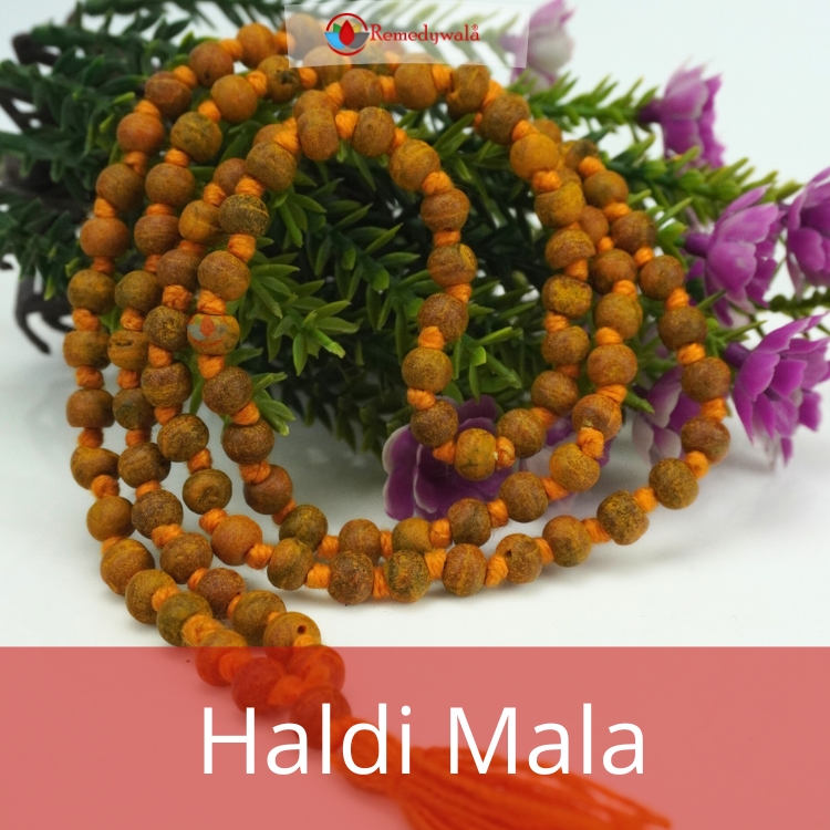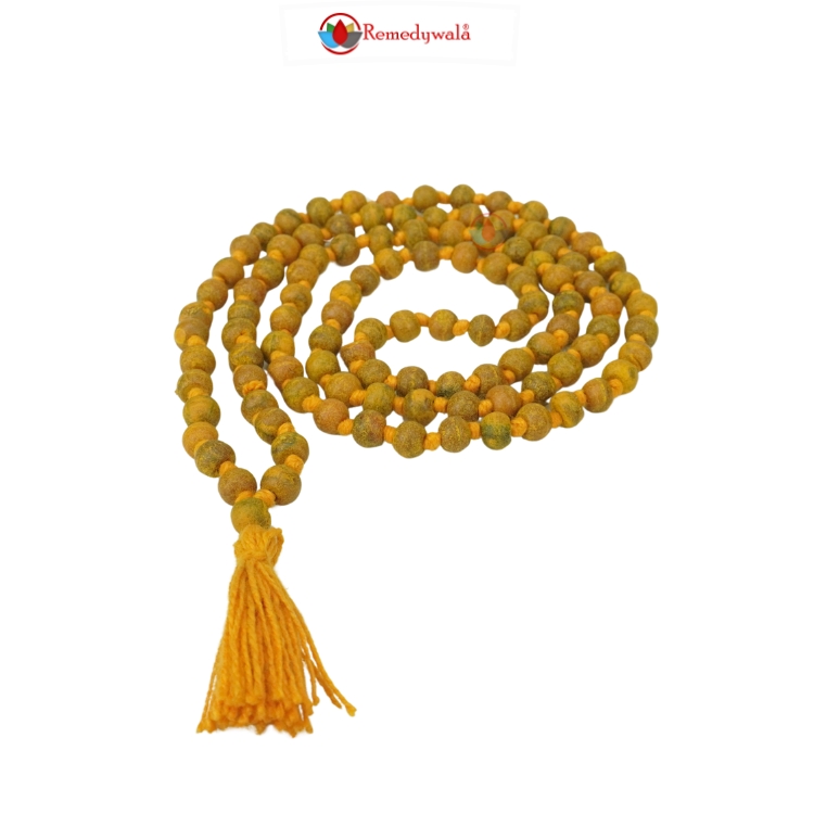 The Bagalamukhi Haldi Mala is a powerful spiritual tool associated with Goddess Bagalamukhi, known for her divine power to remove obstacles, provide protection, and grant success in debates/competitions.