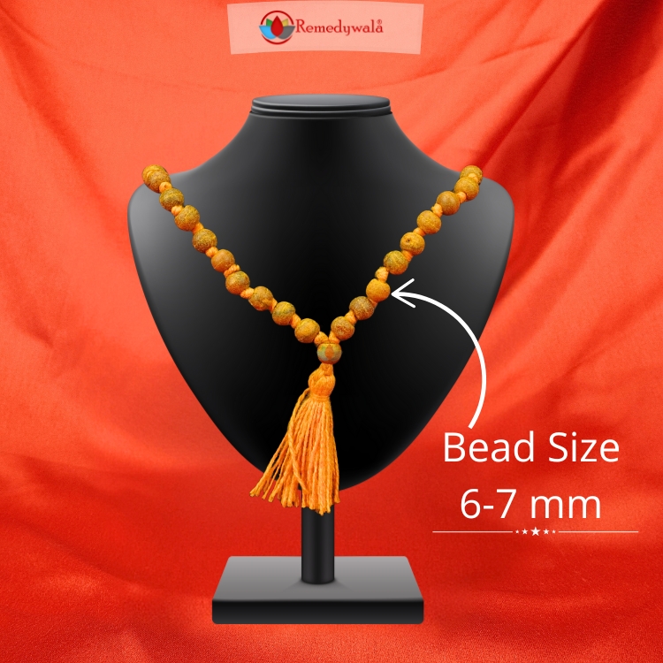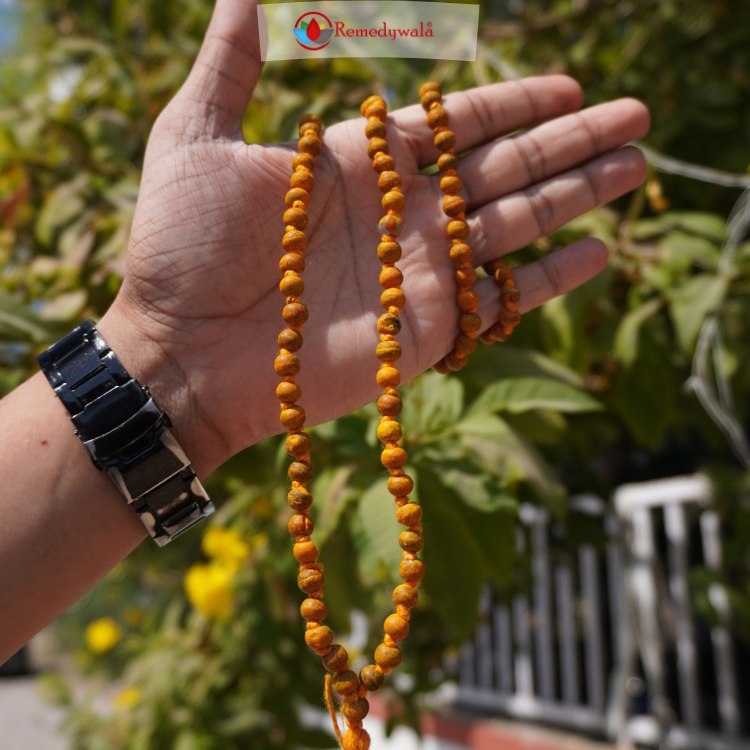 Remedywala mala 108 beads original Haldi 6 to 8 mm Beads Mala | Best AAA Quality Beads Activated, Energized Orange jaap mala for Yoga Meditation, Chanting & Healing (Haldi Mala).