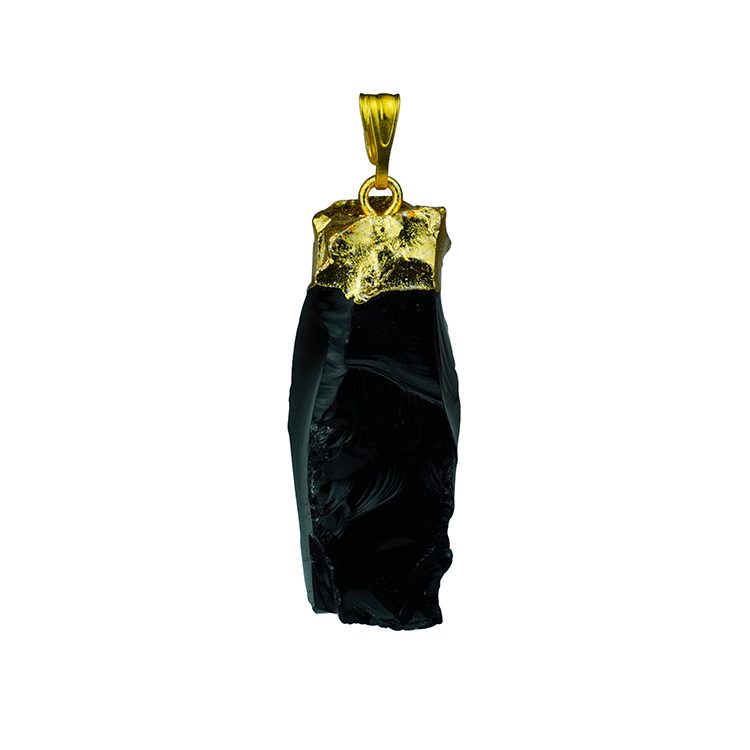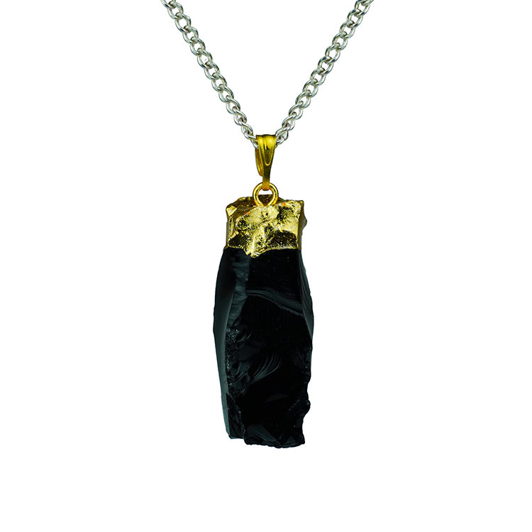 • Black Onyx Pendant Raw Stone Pendant Golden Tone Dipped with Metal Chain. Reiki Healing and Crystal Healing Raw Stone Black Onyx Pendant for Women and Men