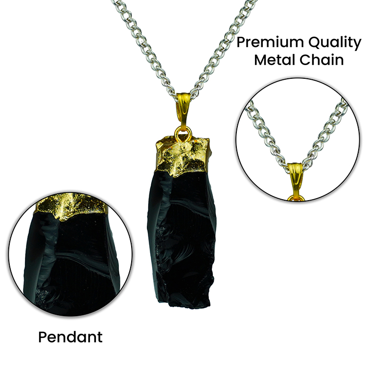 • Material: Black Onyx Natural Gemstone Raw Stone Pendant Golden Tone Dipped with High-Quality Metal Chain For Healing Properties Charged Activated Energized Crystal Raw Stone Pendant Golden Tone Dipped.