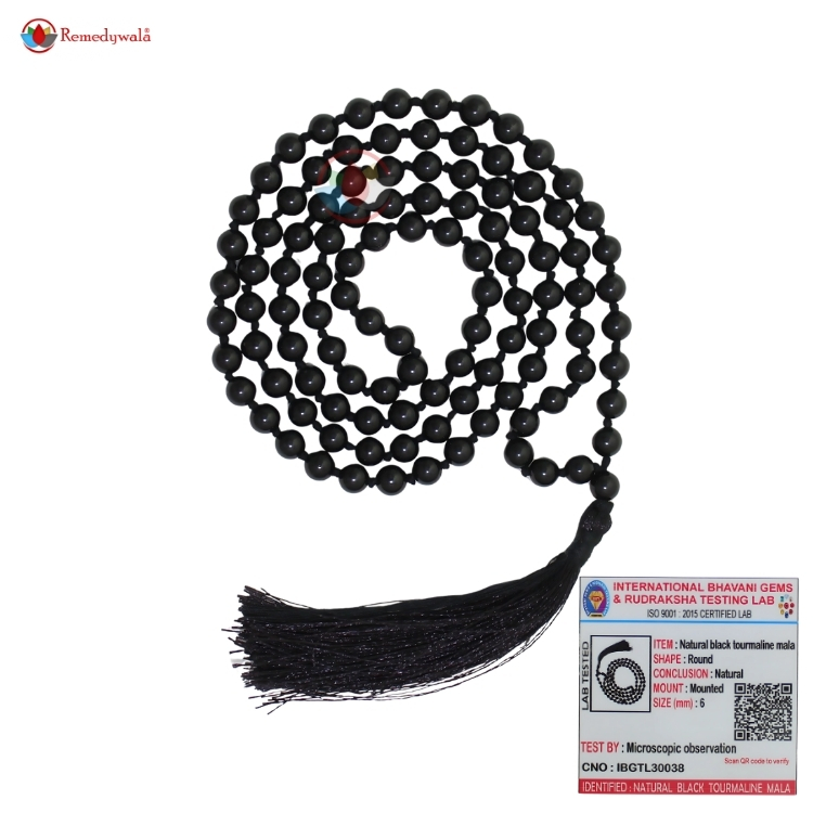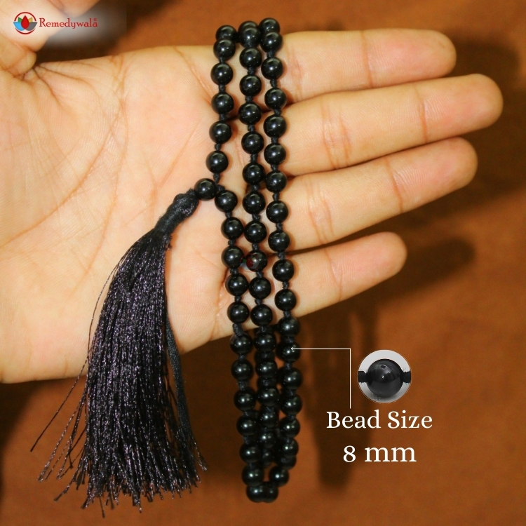 - Handmade Black Tourmaline Jaap Mala and Necklace | Stone Size – 6 mm | Bead Shape: Round | Number of Beads: 108+1
