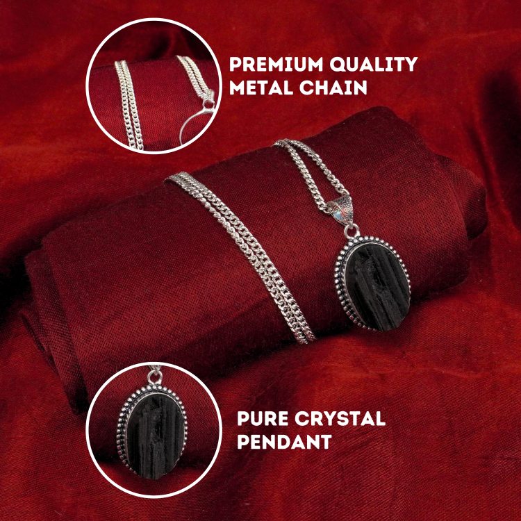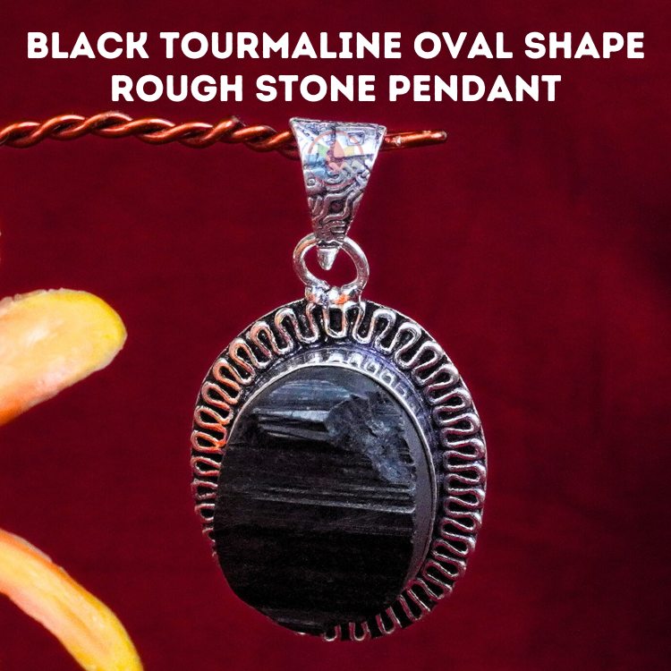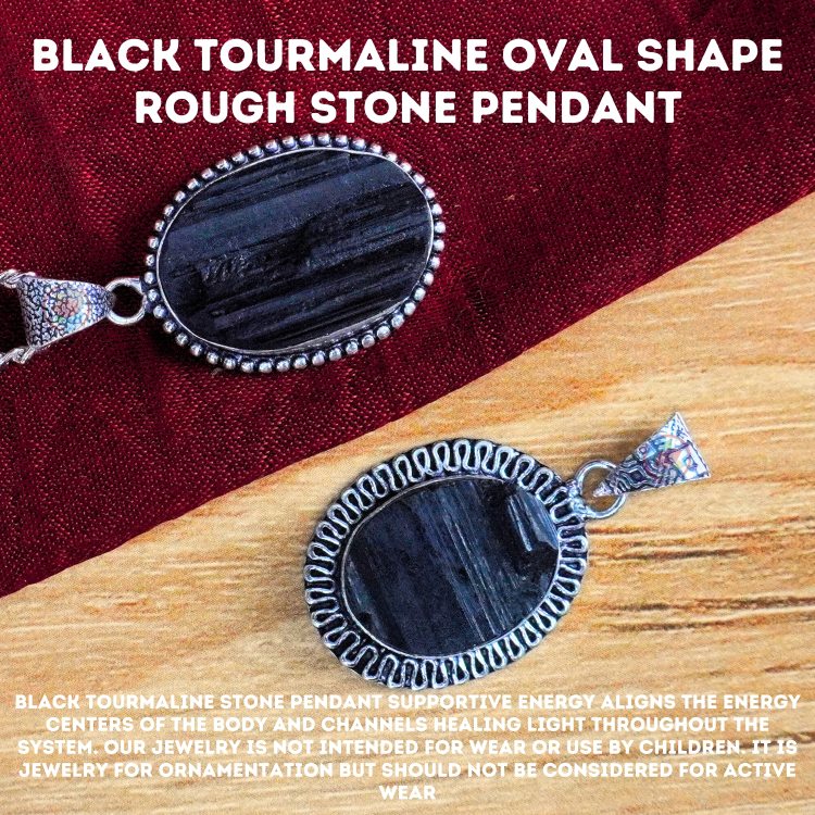 - Black Tourmaline Oval Shape Rough Stone Pendant with Metal Chain. Reiki Healing and Crystal Healing Oval Shape Rough Stone Black Tourmaline Pendant for Women and Men