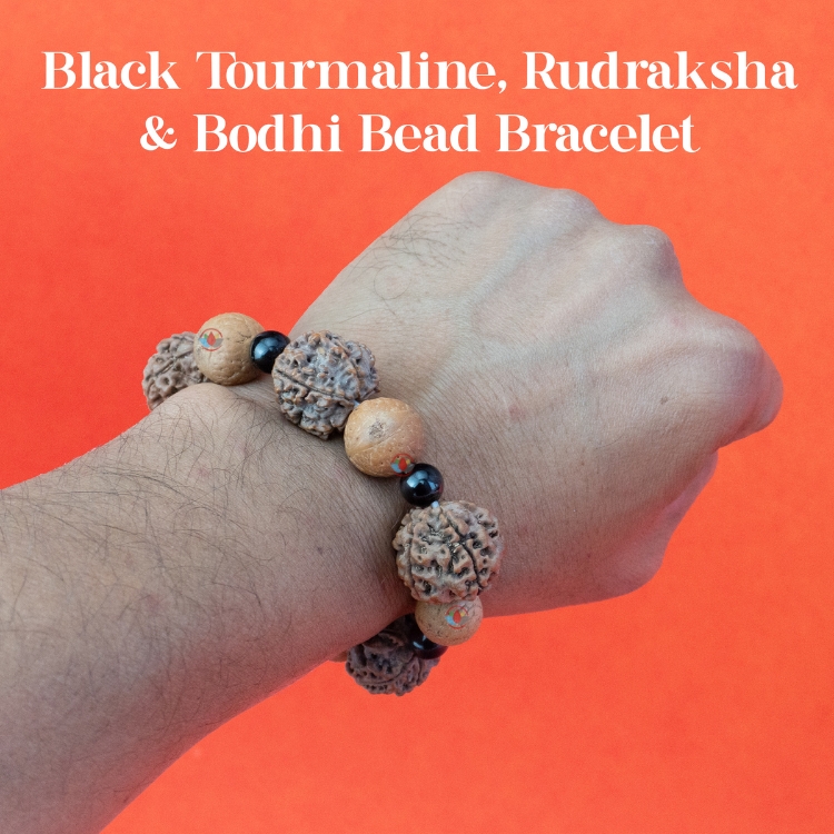 Be the first to review “Black Tourmaline, Rudraksha & Bodhi Bead Bracelet”