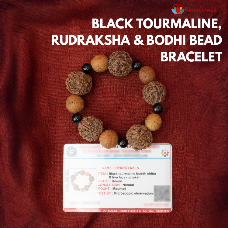 • Black Tourmaline, Rudraksha & Bodhi Bead Bracelet | Adjustable bracelet with certificate | Bodhi, Rudrksha and Stone bracelet for men and women Unisex | piece : 1