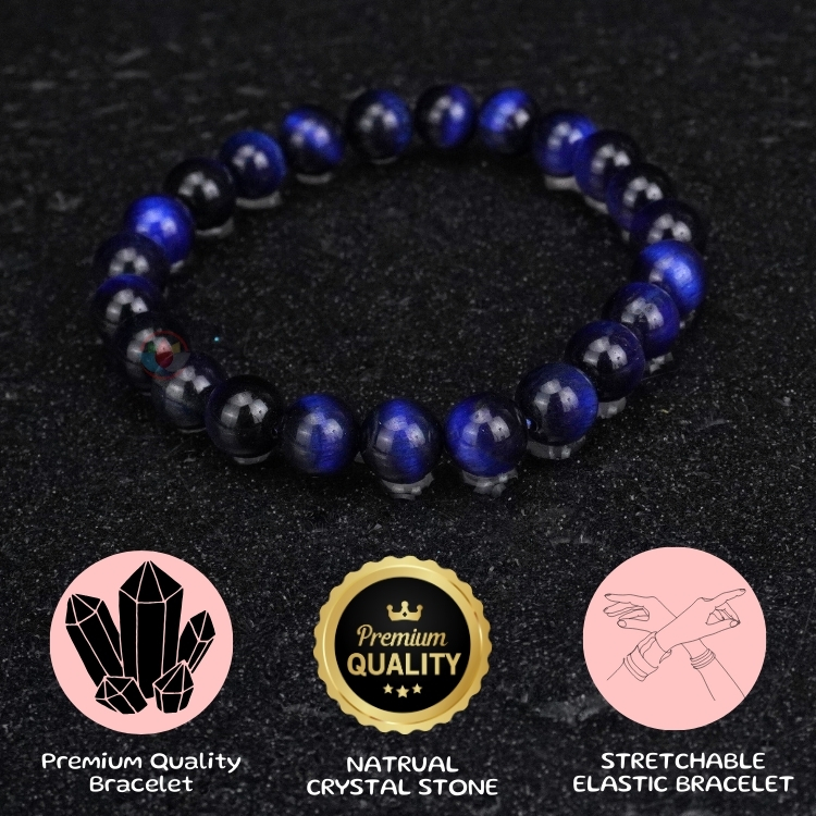 - Material : Natural Healing Blue Cats Eye Stones | SPECIFICATION : Stretchable Elastic Blue Cats Eye Bracelet With Certificate | Stone Size : 8 mm | Shape : Round Stone | Diameter : 2.5 Inch. | Piece : 1