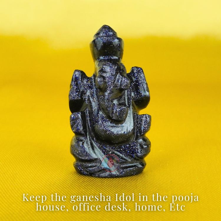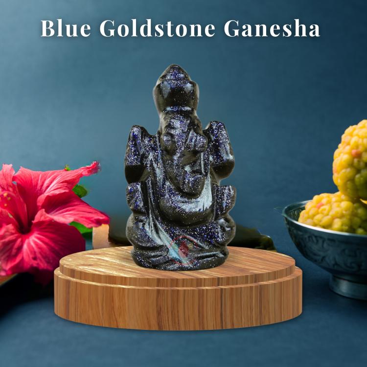 • Blue Goldstone Ganesha idol made with Natural Healing Crystal Stone For Meditation and Home Decor Showpiece