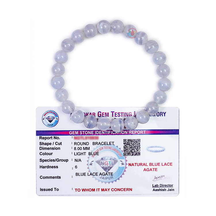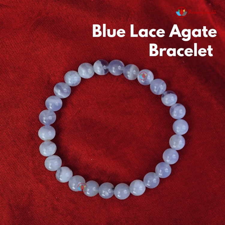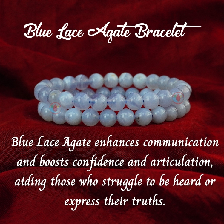 - Blue Lace Agate Bracelet is a variety of banded Chalcedony, a mineral for the Quartz family.