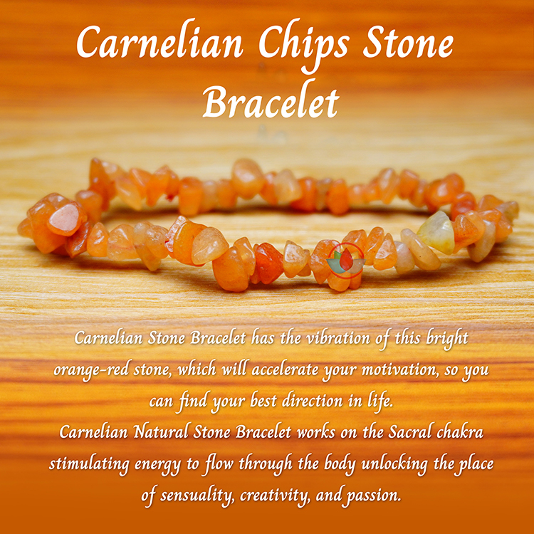 • Carnelian Chips Stones Bracelet are stones of action that will give you the courage and confidence to move forward on a new path in life.