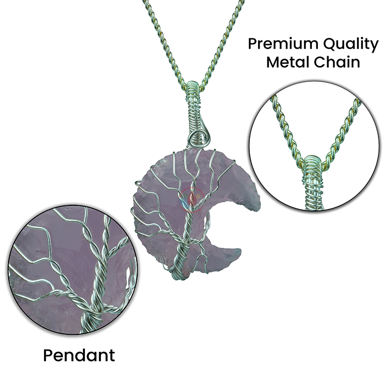 • Wearing Rose Quartz Wire Tree Moon Pendant will help improve your relationship and will promote harmony and dedication between the lovers.