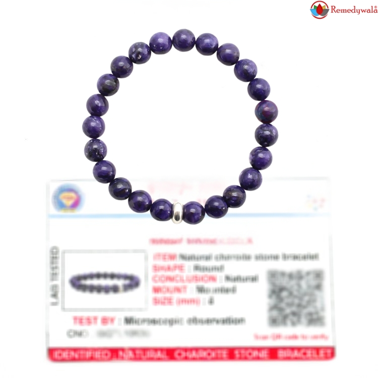 - Material : Natural Healing Charoite Stones | SPECIFICATION : Stretchable Elastic Charoite Bracelet With Certificate | Stone Size : 8 mm | Shape : Round Stone | Diameter : 2.5 Inch. | Piece : 1