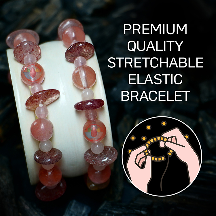 - Material: Natural Healing Cherry Quartz Stones | SPECIFICATION: Stretchable Elastic Cherry Quartz Bracelet | Stone Size: 4 mm & 8 mm | | Diameter: 2.5 Inch | Piece :1