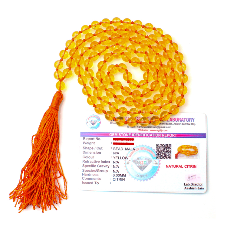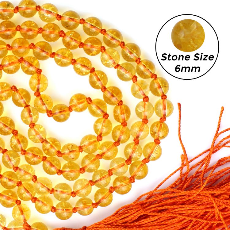 This Citrine Mala With Certificate 6mm Beads Jap Mala features a 108 Beads Mala, comprising 108 counting 6MM beads.