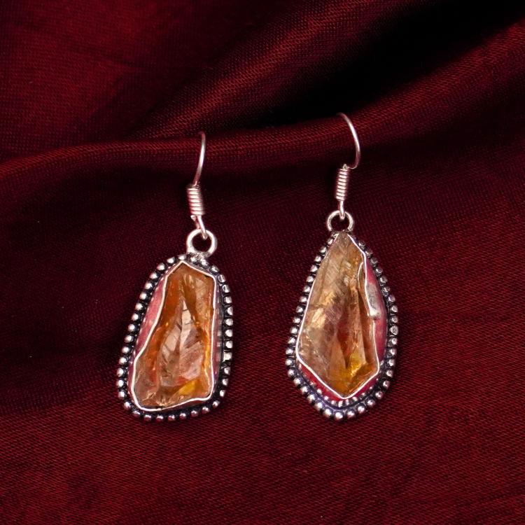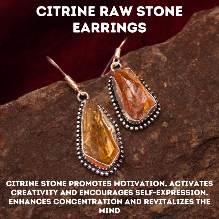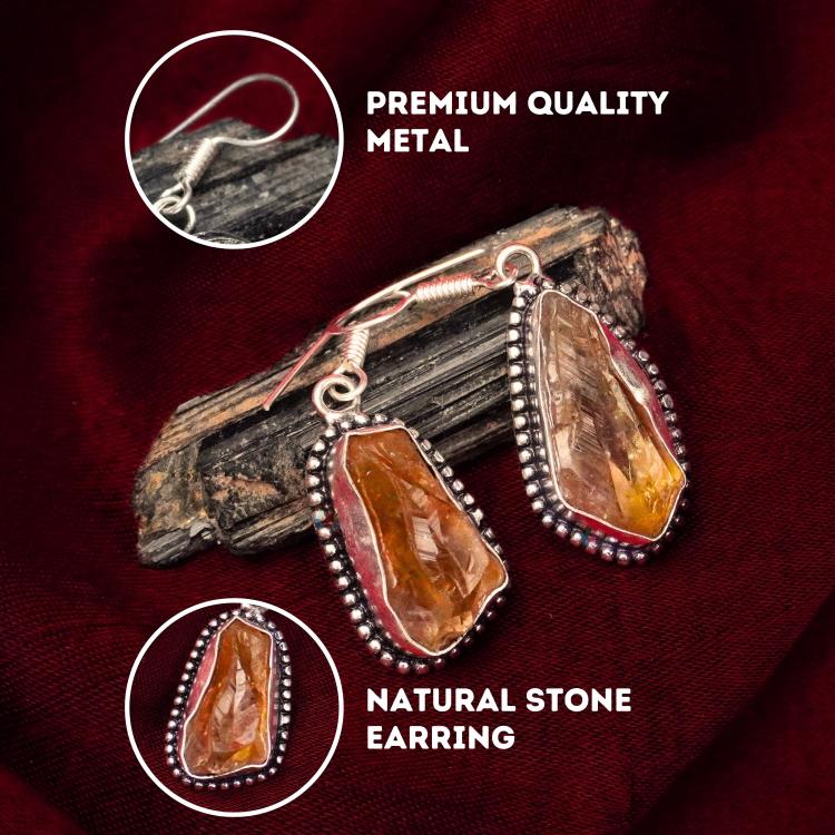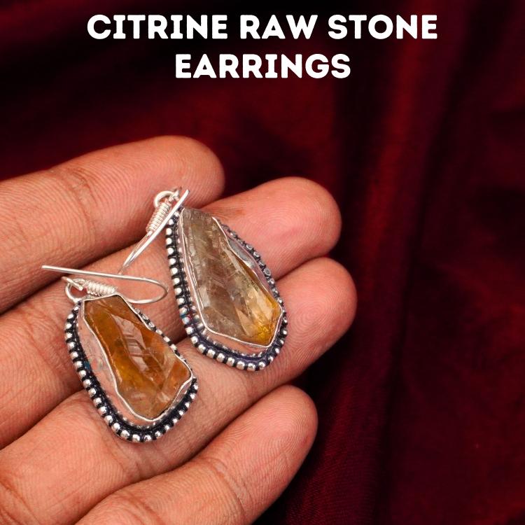 • Citrine Raw Stone Earrings. Reiki Healing and Crystal Healing Raw Stone Citrine.
