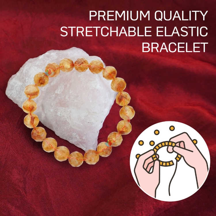 - Material : Natural Healing Citrine Stones | SPECIFICATION : Stretchable Elastic Citrine Bracelet | Shape : Round Stone | Diameter : 2.5 Inch. | Piece : 1