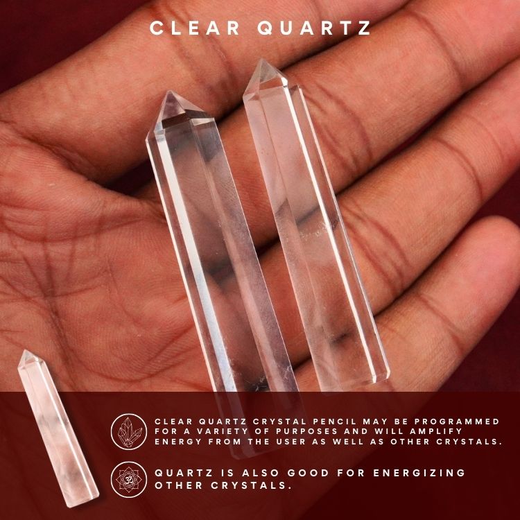 - Clear Quartz Crystal Pencil may be programmed for a variety of purposes and will amplify energy from the user as well as other crystals.