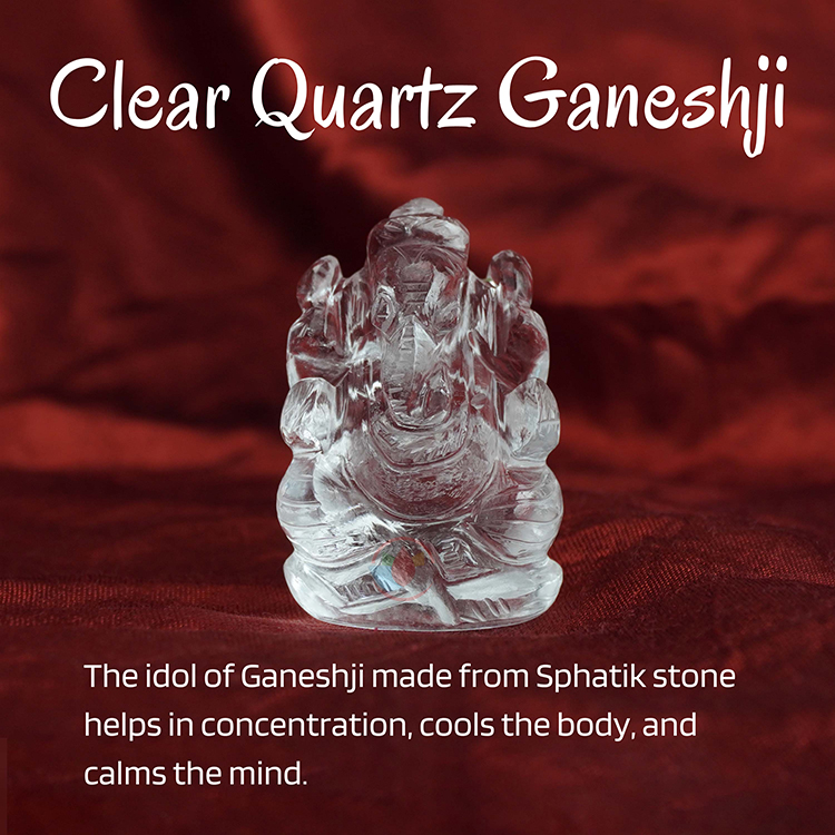 - Clear Quartz Ganesha Statue helps to bring peace and positive energy which coupled with Lord Ganesha’s supreme powers makes the Clear Quartz Ganesha a product which can be kept in the alter or used as a decorative piece or gift item.
