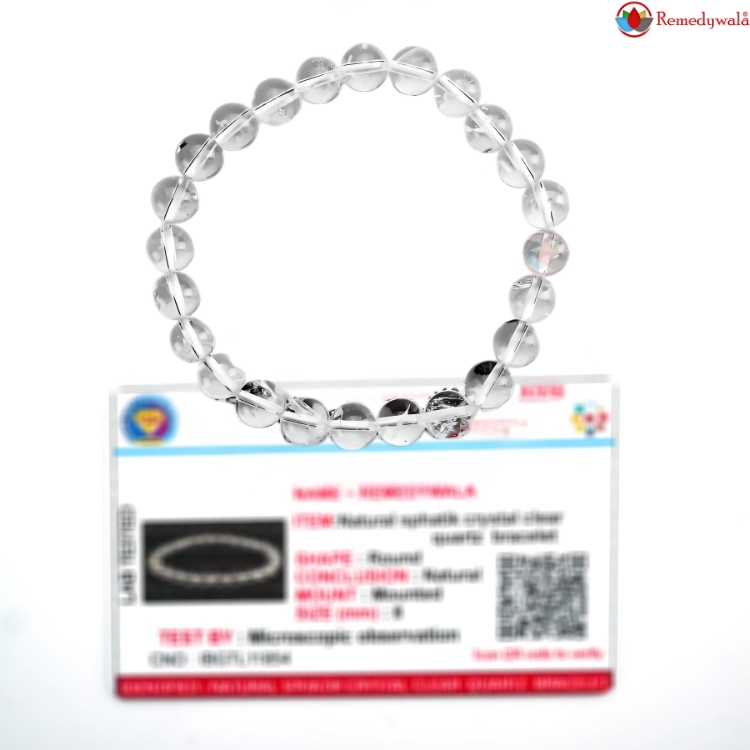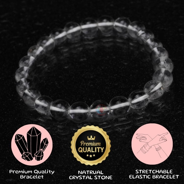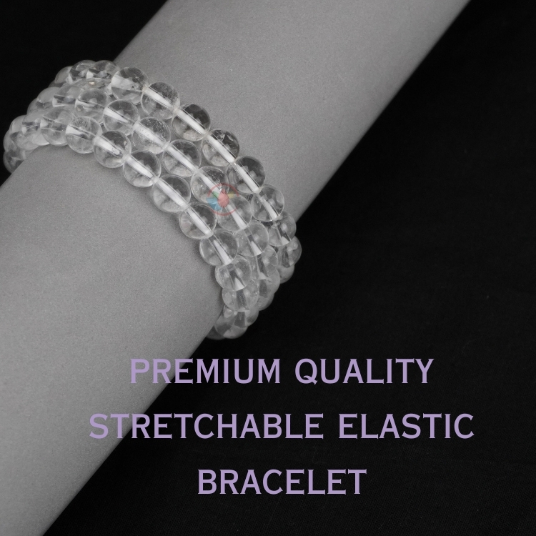 - Material : Natural Healing Clear Quartz Stones | SPECIFICATION : Stretchable Elastic Clear Quartz Bracelet With Certificate | Stone Size : 8 mm | Shape : Round Stone | Diameter : 2.5 Inch. | Piece : 1