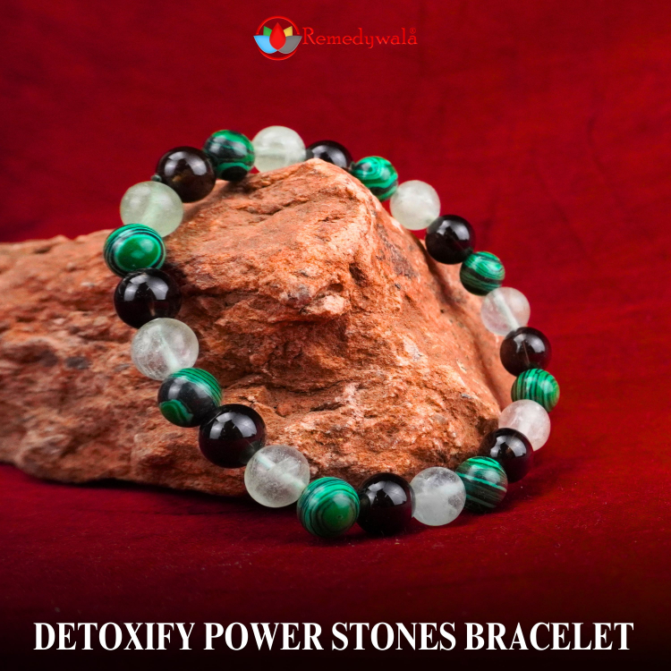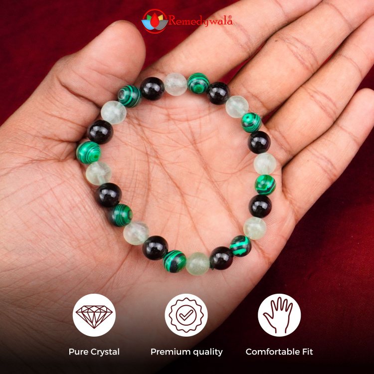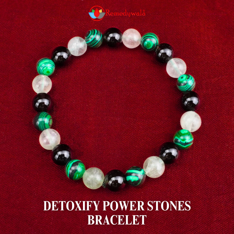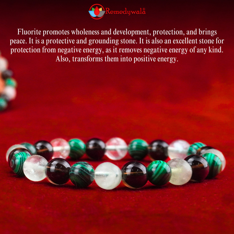 • Detoxify Stone Bracelet is a combination of Fluorite, Malachite and Smoky Quartz which promotes wholeness and development, protection, and brings peace. |