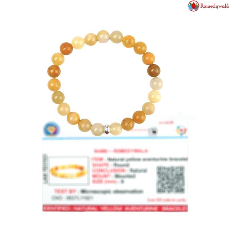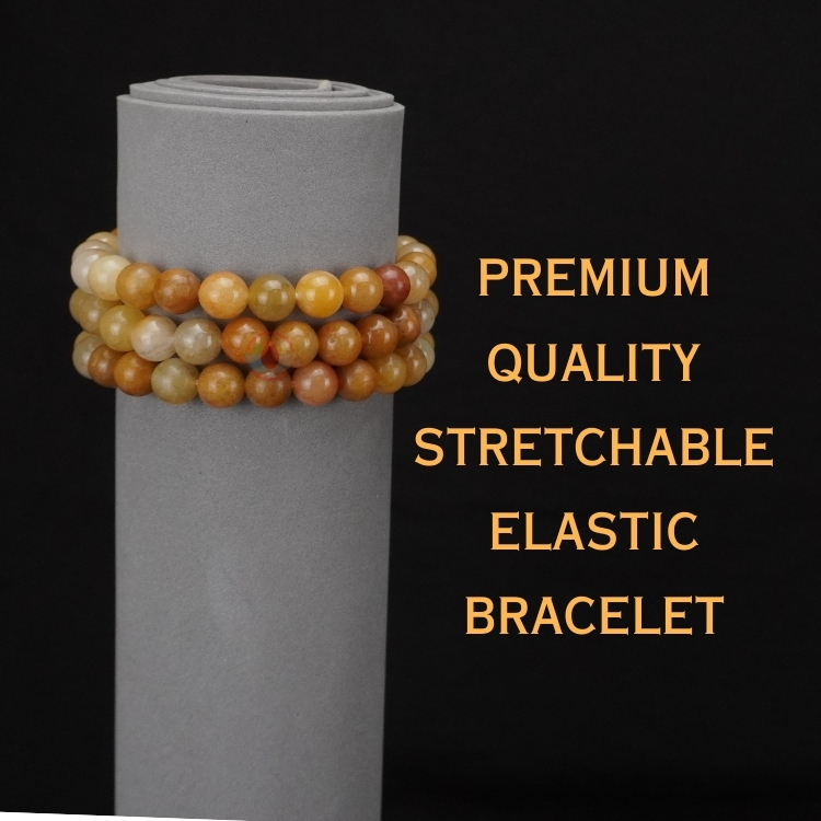 • Material : Natural Healing Yellow Aventurine Stones | SPECIFICATION : Stretchable Elastic Yellow Aventurine Bracelet With Certificate | Stone Size : 8 mm | Shape : Round Stone | Diameter : 2.5 Inch. | Piece : 1