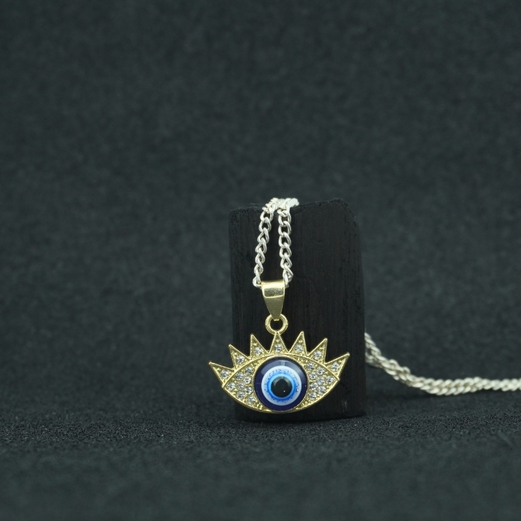 - Bring home divine protection and positive energy with this Golden-Plated Evil Eye Pendant. Known as a Nazar Amulet or Lucky Charm, it symbolizes spiritual shielding from jealousy, negativity, and unwanted energies.