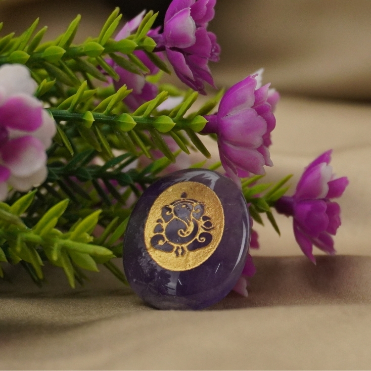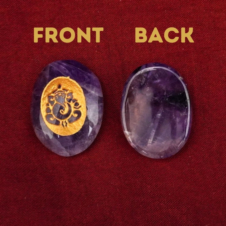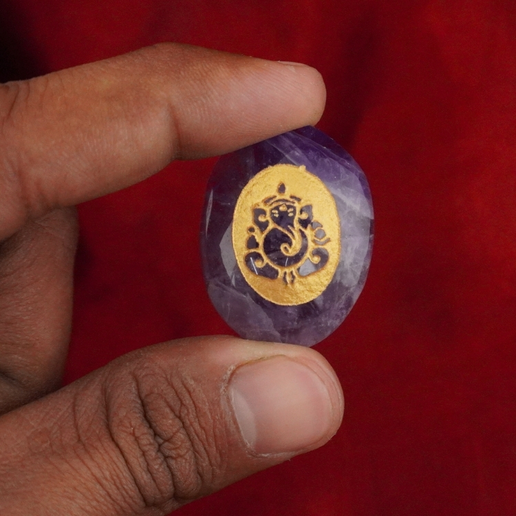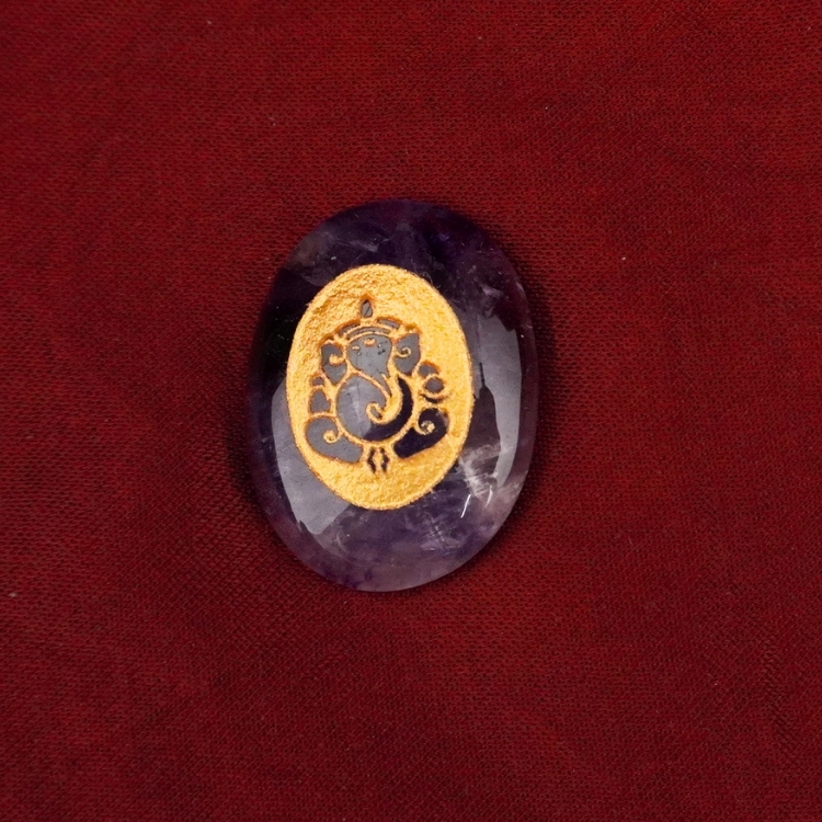 - Amethyst stone coin Amethyst is a semi precious stone and the carving of Lord Ganesh in Amethyst makes it a prized gemstone possession.