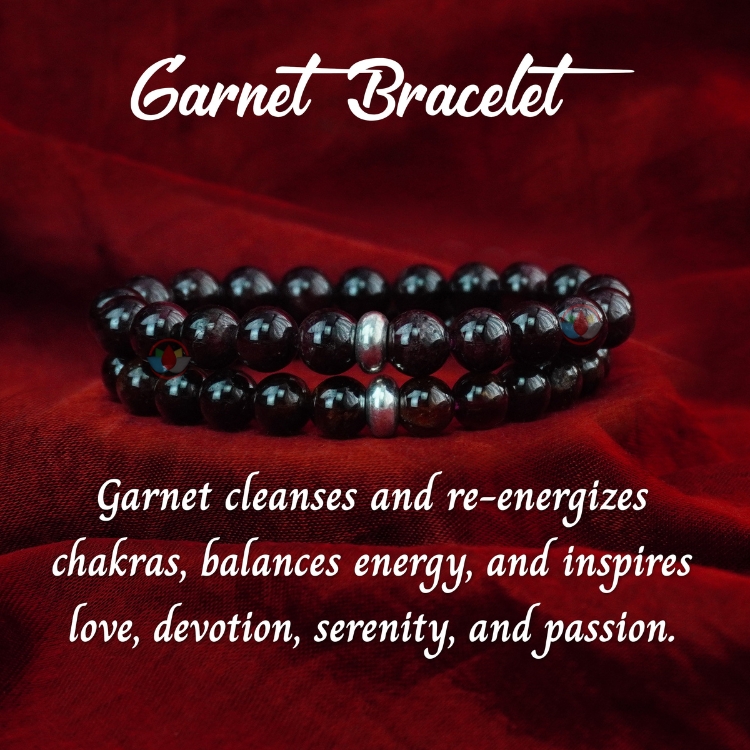 - Natural Garnet Bracelet Garnet cleanses and re-energises the chakras.