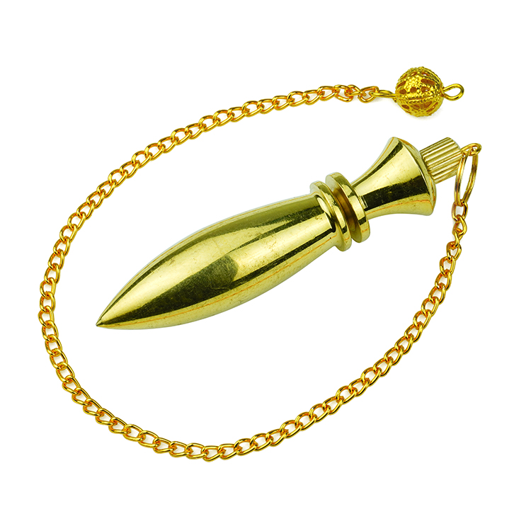 A dowsing pendulum is typically a rock or crystal that hangs on the end of a string or chain. The pendulum is used as a way of gaining spiritual and material insight