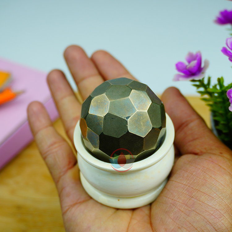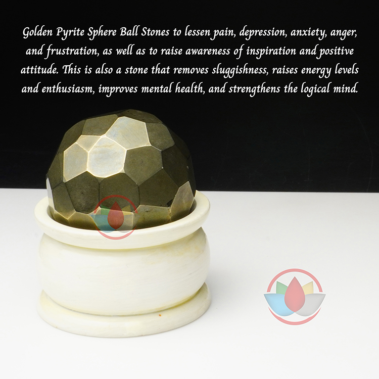 - Golden Pyrite Ball is both a fire and an earth energy stone. Soon after you begin using it, you will feel a growth in your level of energy. This allows you to get through your essential daily activities, with a degree of ease.