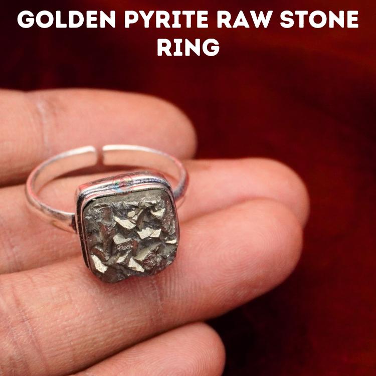 • Golden Pyrite Raw Stone Ring. Reiki Healing and Crystal Healing Raw Stone Golden Pyrite Pendant for Women and Men.