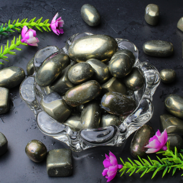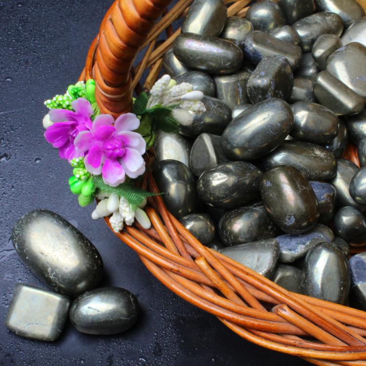 - Golden Pyrite Tumbled Stone is a stone to encourage you overcome feelings of inadequacy and live your life to its full potential. It will boost self worth of the individual and allow you to have the energy to take action, where needed.