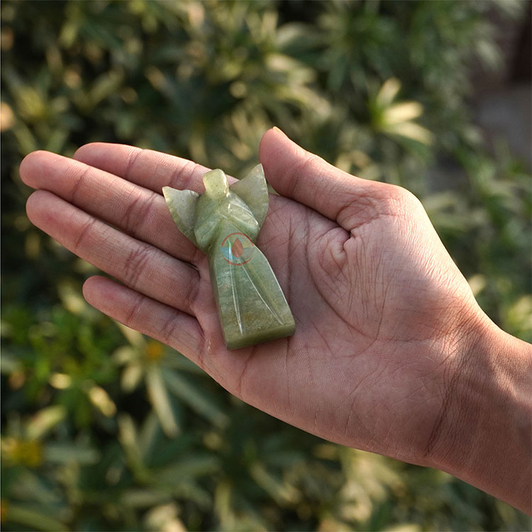 • Stone: Green Aventurine Natural Crystal Stone, Hand carved and polished Angel