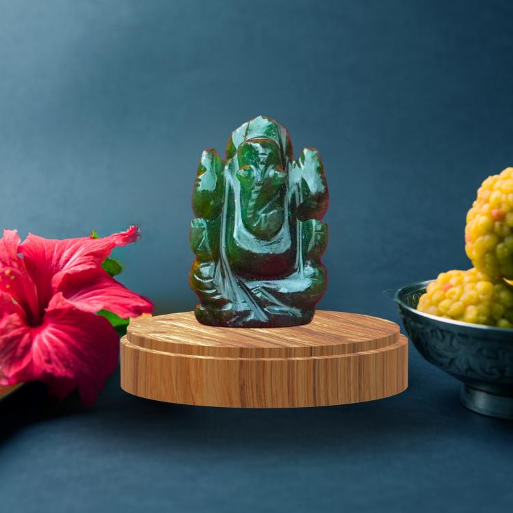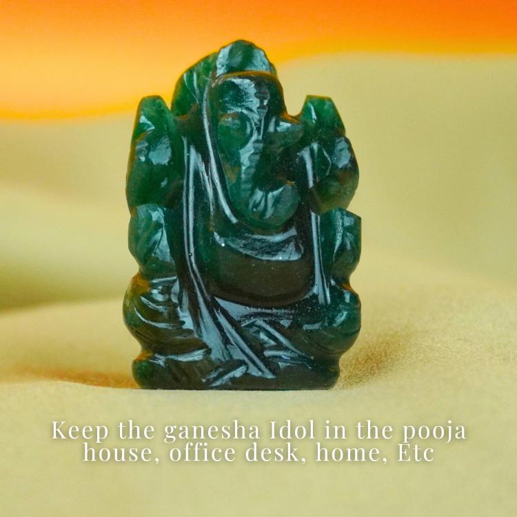 - Green Jade Ganesha idol made with Natural Healing Crystal Stone For Meditation and Home Decor Showpiece
