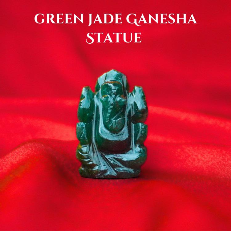 - This stunning Green Jade Ganesha Statue is a beautiful addition to any home or office. Ganesha is the Hindu god of wisdom, knowledge, and new beginnings, and is often depicted with an elephant head. This statue is made from high-quality green jade, which is believed to bring good luck, prosperity, and abundance.
