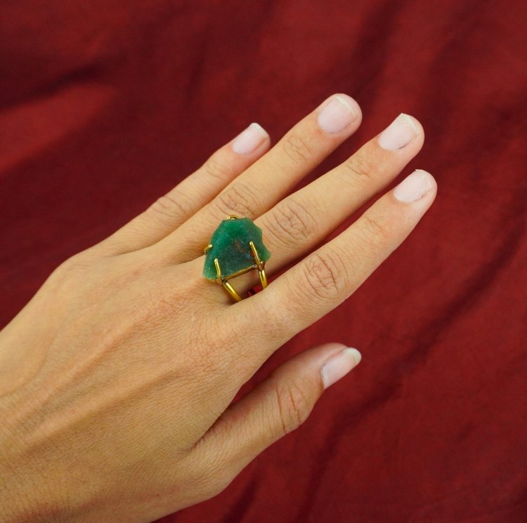 Green Jade Raw Stone Ring
